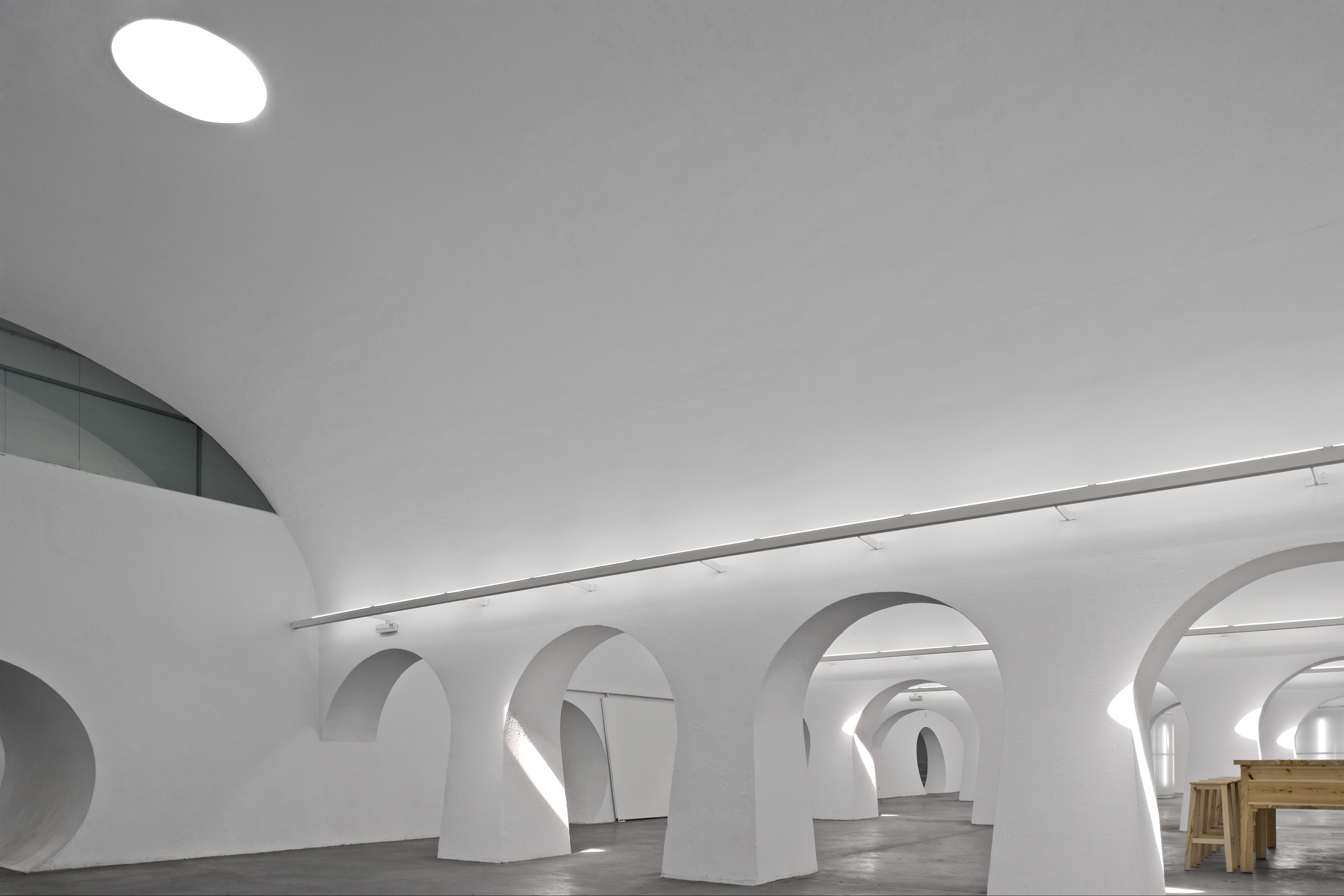capable of meeting the needs of the programme emphasizing on the flexibility of the space. The Space of Young Creation adapts creating holes in the
